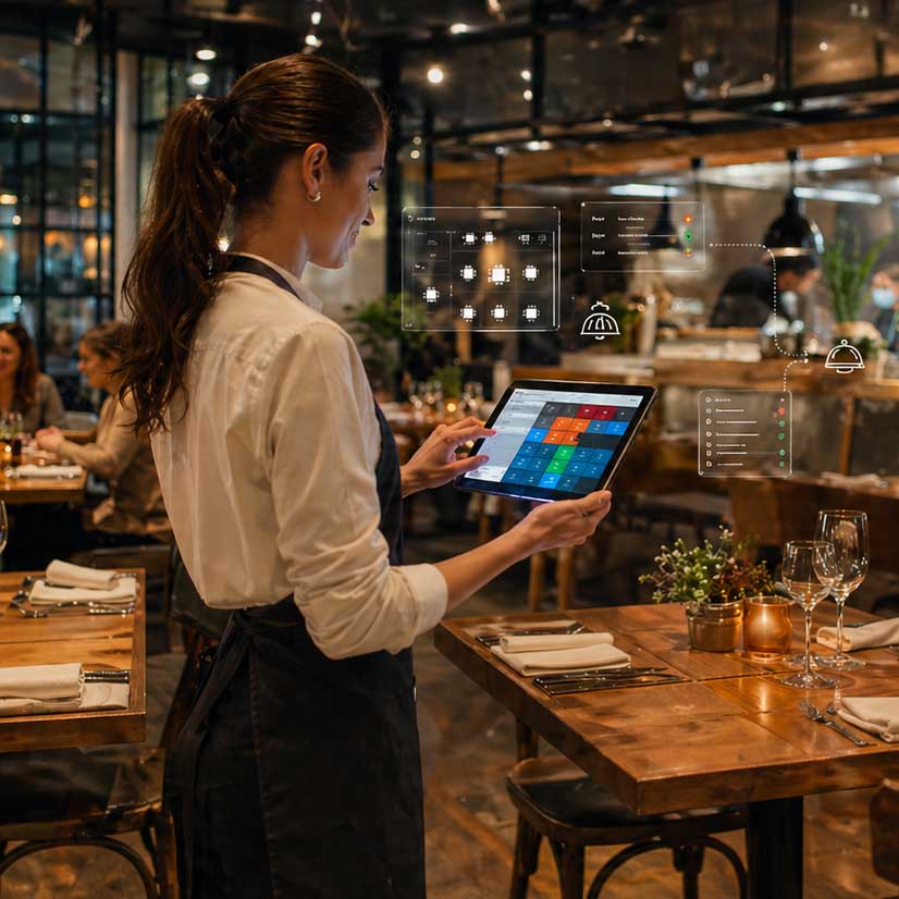 Self-Order-Kioske und QR-Code-Bestellung entlasten das Personal und beschleunigen den Tischumschlag – besonders im Quick-Service-Segment oder für die Außenterrasse.