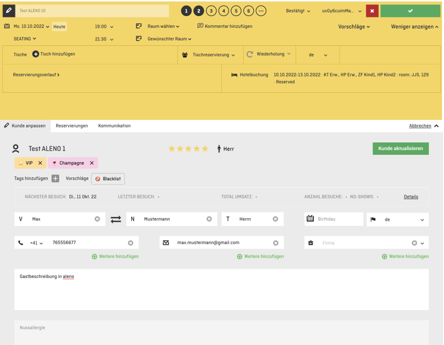 - Markierung der Restaurant- und Hotelgäste.